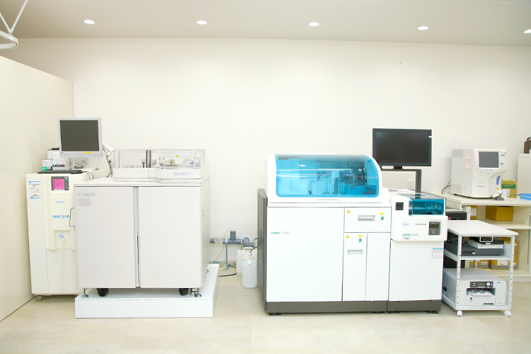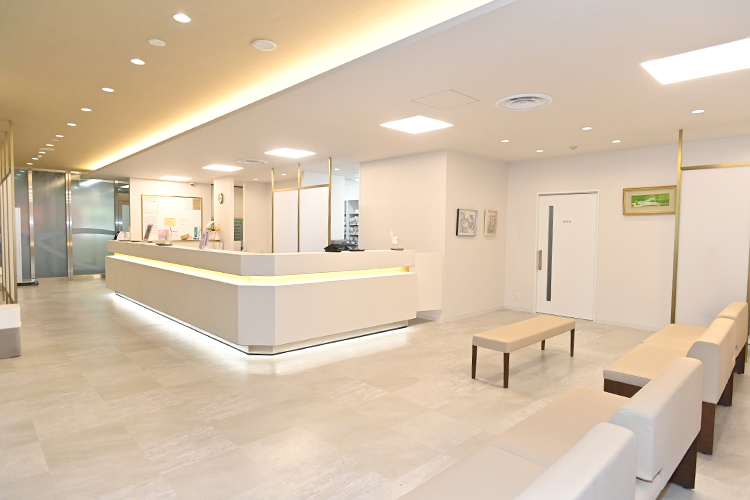 血中ホルモンを測定する血液検査、甲状腺超音波検査、細胞診など、内分泌疾患の診断に必要なほとんどの検査を院内で実施し、結果は原則的に検査後1時間ほどでお伝えしています。内分泌疾患は症状だけでは診断がつきにくく、いろいろな診療科を回っても原因が特定できず不安を感じている患者さんも多いので、その日に検査結果がわかるのは大きなメリットだと考えます。また薬を注射してホルモンの変化を診る「負荷試験」という特殊な検査も行っていて、これは内分泌を専門とする当診療所ならではです。移転後の新診療所はフロアがとても広く、天井が高いのも特長。所内滞在時間もゆったりお過ごしいただけるよう広い待合室を設けたほか、中待合も造り患者さんの動線にも配慮しました。受付カウンターはお城の石垣をモチーフにするなど和テイストにしたのもこだわりの一つです。