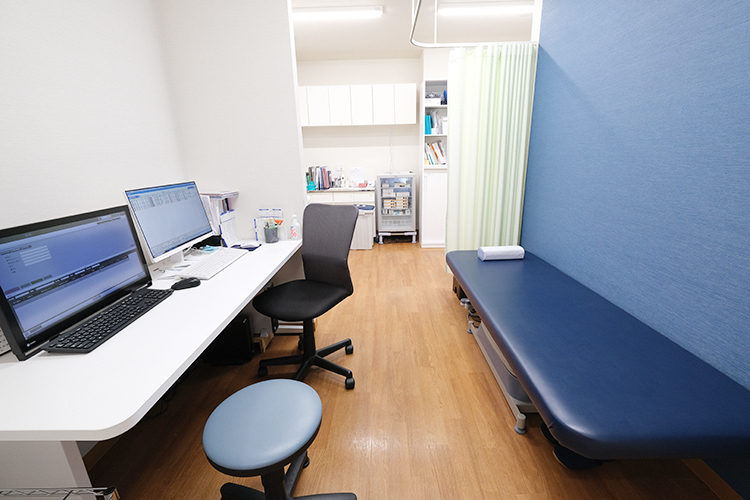 腰痛の方やひざ、肩など関節に痛みのある方には、薬物治療に加えて物理療法をご提案しています。物理療法として、立体的(3次元的)に電流を流すタイプの機器を導入しています。この機器は、局所的な痛みの緩和に対応しているので、例えばぎっくり腰や寝違え、急に首が回らなくなったような状態への治療に適しています。また慢性的な腰痛やひざ痛に対しても、患者さんの状態を確認しながら治療を進めていきます。通院のタイミングは患者さんの症状に合わせて調整していますが、毎日仕事や買い物の前に、「今日は長時間座るので」「今から重い荷物を持つので」などの理由でお越しになられたり、夕方に今日の痛みを取りたいと来院されたりする方もおられます。