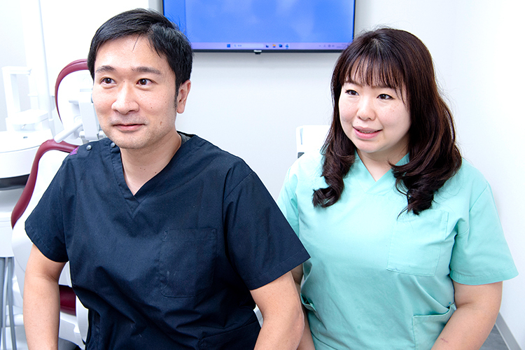 【悠介院長】一般歯科の他、専門とする歯科口腔外科に精通していますが、中でも親知らずの抜歯や顎関節症の治療なども数多く手がけています。私は大学病院に長年在籍し、現在も鶴見大学歯学部口腔リハビリテーション補綴学講座に、妻とともに籍を置いています。難しい症例もたくさん診ているので適切な診断のもとに、他院へ紹介するべきケースを速やかに判断。必要であれば、大学病院や総合病院も含めて、患者さんに合った治療を得意とする病院へ紹介します。もちろん紹介して終わりではなく、送り先の病院と連絡を密にして、治療後のアフターフォローも責任を持って担当するのでご安心ください。
