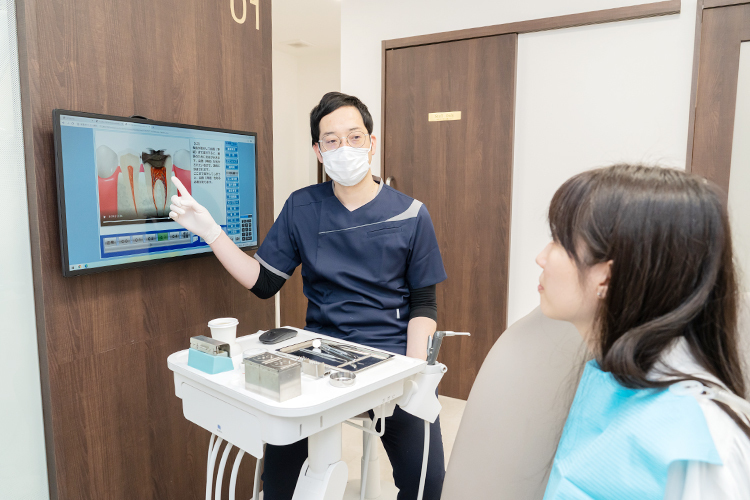 【可徳院長】患者さんとよくコミュニケーションを取って、ご納得いただいてから治療に入るというプロセスを大切にしており、特に初診の方の場合1時間はかけるようにしています。もちろん痛みがある方は治療を優先しますが。そして、患者さんが治療内容を理解しやすいよう、動画を使って説明をしています。