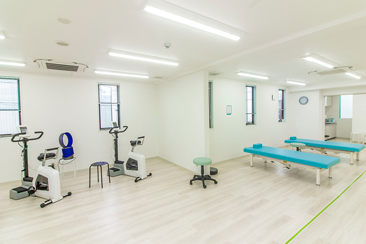 2階のリハビリ室には2人の理学療法士が常勤し、さまざまな方法で呼吸器疾患を持つ患者さんのサポートに尽力しています。手術の影響で体力が低下している患者さんや、肺炎で入退院を繰り返している患者さんのほか、在宅で治療を受けられている方なども対象です。呼吸というのは肺だけで行っているわけではありません。肺の周囲にある呼吸筋を鍛えたり、運動や呼吸法の練習をしたりすることで、呼吸をしやすくすることが望めるようになります。また、リハビリの成果は呼吸機能検査を再度測定し、客観的なデータによって確認ができます。当院では呼吸リハビリに長年従事してきたスタッフが、患者さんそれぞれに合わせたリハビリのプランを組んでおります。病院からの紹介も徐々に増えていますので、ぜひ私たちと一緒に頑張っていきましょう。