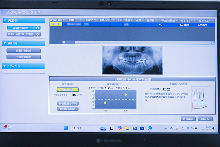 これからも、新たに導入した口腔内スキャナーをますます活用していきたいです。そして、ご家族みんなで通えるかかりつけ医としてお役に立てれば幸いです。予防医学の考え方の一つに健康から病気になる移行段階として「未病」という言葉があります。ご自身のリスクを知り「未病の段階」からのケアで「健康」に戻すことが何よりも大切です。ご高齢の患者さんも多いので、口腔管理体制強化加算(口管強)の基準を満たした歯科医院として、口腔機能管理に力を入れていきたいと考えています。口腔機能低下症が疑われるならば咬合圧検査、咀嚼能力検査、舌圧検査などを行い、口腔内から全身の健康をサポートしていきたいです。だからこそ、内科、整形外科、耳鼻咽喉科、皮膚科との連携も強化したいと思っています。