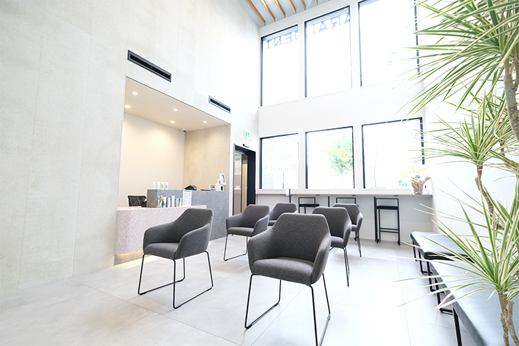 歯科医院というと緊張する方も少なくありませんので、まずは閉塞感のない空間づくりをしました。吹き抜けにして天井を高くし、天窓で陽光を取り入れることで、解放感を演出しています。待合はイルカや熱帯魚の映像やジャズなどの音楽を流して、癒やしの空間をめざしています。こだわったのは待合から託児ルームが見えるようにしたこと。お母さんにも安心いただきたいですし、単にモダンな印象だけでなく、人の温かみが感じられるようにもしたかったからです。子どもはそこにいるだけで明るい雰囲気をつくってくれますし、リラックスして治療を受けていただけると思います。また、自分自身や大切な人にも、自信を持って勧められる歯科医院でありたいので、衛生管理にも注力しています。厳しいヨーロッパ基準を満たした滅菌器や、患者さんごとに交換できるものは、すべて使い捨て製品を使用しています。