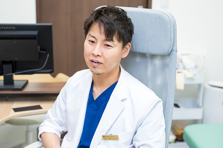 「For You」の精神で、すべての患者さんに満足いただくことを第一に考えています。それは治療に関する説明、待合室での接遇、治療内容や対応の迅速さなどあらゆる面においてです。スタッフも明るく元気な人がそろってくれました。患者さんに満足いただくだけでなく、感動してもらえるレベルの治療を提供したいと思っています。もう一つ大切にしているのは適切な診断です。「あなたの病気はこれが最も考えられる」と明示し、適切な治療と治癒までの経過をご説明することは医師として当然の務めだと考えています。そのために皮膚組織を採ったり、エコー検査をしたり。問診・検査でしっかりと裏づけを取った上で、自信を持って診断を下すように努めています。根拠に基づいて適切に診断すること、決して投げ出さないことを信条に日々診療しています。