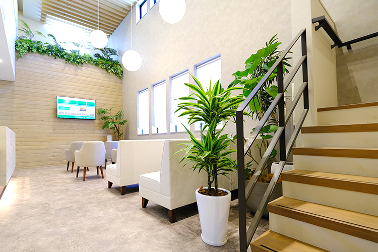 白い無機質な空間ではなく、患者さんの不安が和らぐようなスペースにとデザイナーさんにお願いしました。照明や壁紙にもこだわって、観葉植物もたくさん置いています。敷地が限られているので2階建てにして、2階のスペースは第二待合室か、くつろぎの空間の中で栄養指導やさまざまな交流スペースにすることを考えています。また心疾患とも関わりの深い生活習慣病は、薬を使うだけでなく、運動や食事指導からアプローチできることも私が患者さんに広くお伝えしたいことです。といっても「あれはだめ」「これはだめ」という厳しい指導ではなく、「一緒に頑張っていきましょう」というやり方なので安心してください。