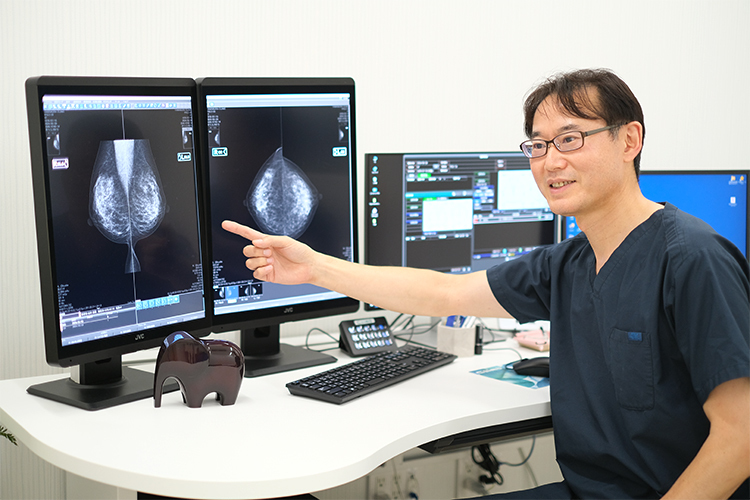 地域の乳がんの死亡率を下げたいという最終的な大きな目標はあるのですが、それは一朝一夕にはかないません。まずは来ていただいた患者さんお一人お一人に誠実な対応をさせていただいて、きちんとした検査や診断をさせていただくことが目下の展望です。そして、もし乳がんが見つかった場合は速やかに連携先の病院に治療をお願いし、その後のケアはご希望があれば当院で診させていただきたいですね。そういった日々の診療をコツコツ続けることが一番大切かなと思っています。そして、この地域の乳がん検診の受診率は全国平均よりも低いのが現状なので、受診いただけるようにすることから頑張っていかなければならないと思っています。検診に行きたくてもどこに行けばいいのかわからない方や、怖くて行きにくいという方に対し、いかにハードルを下げて来ていただけるようにするかという点はまだ悩みどころですね。