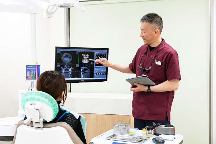 【関先生】一つは歯科用CTがあるところです。歯の根の部分が顔の骨の中にきちんと収まり、安定することをボーンハウジングといいます。歯科用CTは、歯の根が骨の中に納まっているかどうかを見ることができ、現代の矯正には不可欠な機材です。矯正には、抜歯せずに歯を大きく動かすための方法があるのですが、その場合、歯の根の部分が骨から外れた場所に行ってしまわないかどうか、歯科用CTを撮ることで予測しやすくなります。よほど軽度なケースは別ですが、なるべく歯科用CTを活用して口腔内の状況を確認しながら診察しています。また、矯正のために抜歯が必要になったり、通院中に虫歯が見つかったりしても、紹介状を持って他院に行かずに当院で処置できるところも大きな強みですね。