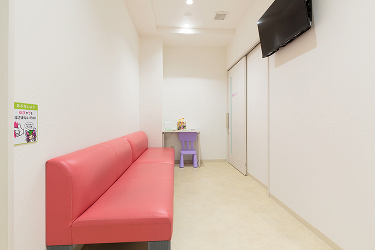 ロゴマークやキャラクターは、苗字の「藤森」にちなんで、藤の花をモチーフにしました。クリニックキャラクターは、私が落書き程度に描いた絵を絵心のある友人が整えてくれました。最初は餅のようだったキャラクターがかわいく変わっていて、ビフォーアフターの落差がとても大きいですね(笑)。友人には大感謝です。クリニックキャラクターは外からも確認できるので、来院の際の目印になると思います。当院は、1階でインターフォンを鳴らしていただき、受付のある2階へ上がっていただくシステムになっています。また、患者さんはお名前ではなく、お渡しする受付番号でお呼びしています。診察室は3階にあり、基本的に特別な事情がある場合を除いては男性の立ち入りはご遠慮いただいています。婦人科では下着を脱いで検査をする場合もあり、女性に安心感を持っていただくための配慮なので、ご理解いただけるとありがたいですね。