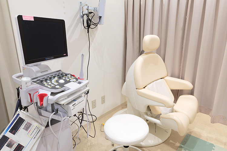 初めての産婦人科受診は怖いじゃないですか。ですから、診察する時はできる限り「痛い」「怖い」ということがないよう心がけています。具体的な一例として、膣内部や子宮頸部を観察するために使う膣鏡は、なるべく小さいサイズのものを使っています。産婦人科ではよく超音波検査をしますが、子宮や卵巣までの距離があるため、より精密な検査を行う場合は膣側から検査をします。ただ、性交経験がない若い人やどうしても怖いと感じる人もいらっしゃるので、はっきりと状態を診ておかなければならない場合はお尻から検査することもあります。負担を軽減するためゼリーを塗布したり、声かけを欠かさずにしたり、内診室の椅子の前に設置したモニターを一緒に見ながら説明したりするなど、少しでも気が紛れるような工夫をしています。何よりも一番気をつけていることは、緊張をほぐしてあげることですね。