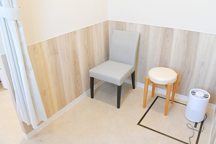 内科と呼吸器内科を診るクリニックですので清潔感を大切にしました。特にこだわったのは空気ですね。常に衛生的な空気環境をつくり出すために、空調機器にこだわりました。患者さんも小学生からご高齢の方まで幅広いですので、どなたが来られてもリラックスできるよう自然な雰囲気にしています。また、発熱者専用の入り口と半個室の待合室、さらに専用の診療室も設置していて、一般の患者さんとは動線を別にしています。発熱者の診療ではインフルエンザや新型コロナウイルス感染症の検査をするだけでなく、流行に応じて他の感染症の簡易検査やレントゲン、血液検査まで対応しています。