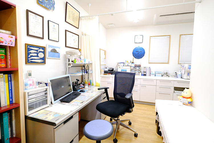 そうですね。父は医学部卒業後に20年小児腎臓を専門として働き、診療所の開業医として30年間の地域医療をしてきました。これだけ長く医師をしていると、当時父が診ていた子どもの患者さんが、成人して自分の子どもを連れて来院する姿を側で何度も見てきました。父のように50年も医師を続けることは容易ではないと思いますが、今でも患者さんのほうから父と笑顔で会話をされる様子を見ると、自分も患者さんと長いお付き合いができるよう、地域に根づいた医療をしていきたいと感じます。また、当院では、父の代から予防接種や簡易検査の際、つらい思いをする子どもへの対応も工夫しています。子どもに限らず大人まで興味を惹くようなキャラクターもののポケットティッシュを引き出しに大量に用意し、選択してもらいます。ファミリーも和む効果は絶大なのでこれからも続けていきたいと思います(笑)。