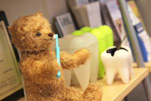 当院は地域密着の歯科医院で、年齢層もお子さんから高齢の方まで幅広いですね。診療内容も予防と各症状の治療、入れ歯治療、審美面に配慮した治療などさまざま。私は近くの保育園や小学校の嘱託歯科医・学校歯科医を続けているため、定期検診で再検査になったお子さんと親御さんが一緒にみえることもあります。逆にご自分が通われていて、お子さんには自分のような虫歯・歯周病になってほしくないと、歯が生え始めた頃から一緒に受診されるケースも。当院もお子さんの早期受診は大歓迎で、早くから歯科医院に慣れてもらえば、その後もちゃんと通ってくれるでしょう。また、親御さんにはブラッシングや食生活のアドバイスをして、親からの口移しによる虫歯菌感染を防ぐよう注意を促すなど、お子さんの口の中の健康を保つための情報もお伝えします。