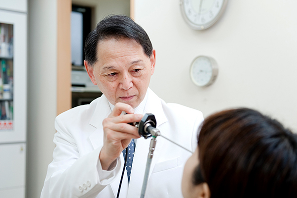 生後数ヵ月の赤ちゃんからご高齢の方まで、幅広い年齢層の患者さんが風邪をひいたなどとおみえになります。最近、外国人の方も増えてきたように思いますね。さまざまな方に安心して来ていただけるよう、院内はベビーカーや車いすでも通いやすいバリアフリー設計にしました。また、お母さんが風邪をひいたら、ベビーカーを横に置いて診療を受けられるように、お母さんが聴力検査を受ける際には、待っている子どもからガラス越しに様子が見えるように工夫しています。プライバシーにも配慮した院内レイアウトになっていますので、女性の方も受診しやすいと思いますね。