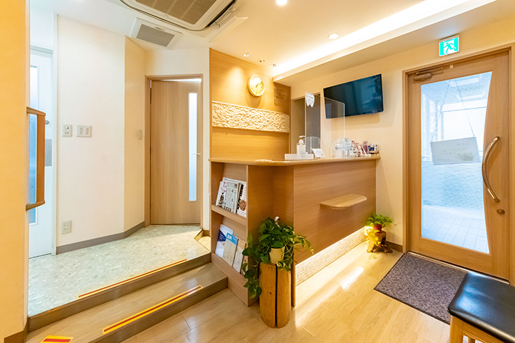 待合室から診療室に入るところに少しの段差があるので、すべての患者さんに、「段差に気をつけて」と声をかけています。高齢者の場合は、受付スタッフがエレベーターに乗って1階までご一緒しています。ビルの出口にもほんの少しですが段差があるので、お見送りしながら、きちんと歩いて帰る様子を見てもらっているんです。また、子連れで受診されるお母さんには、受付スタッフが待合室でお子さんを見守る体制を取っています。子育て中は、自分の歯のことは後回しになりがちですよね。せめて産後歯科検診時は、「自分のための時間」にしていただきたいと思っています。