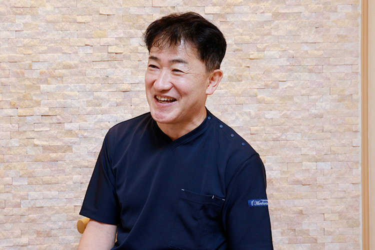 患者さんから見た当院のイメージは、スタッフ8割、先生2割って感じじゃないかな(笑)。長く勤めているスタッフばかりで、患者さんは顔なじみがいると安心感があると思います。それに、歯医者さん嫌いでなかなか足が向かなかった人が、たまたま当院のスタッフと気が合ったのか、転勤してもすごく遠くから来てくれているんです。予約を取る時の会話、ちょっとした歯の相談、まずそれを受けるのはスタッフです。うちのスタッフは皆、ベテランで優しいんですよ。私が気づかない患者さんの様子も知らせてくれます。だから、私はスタッフにものすごく感謝しているんです。
