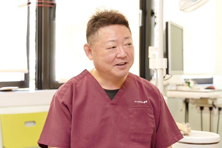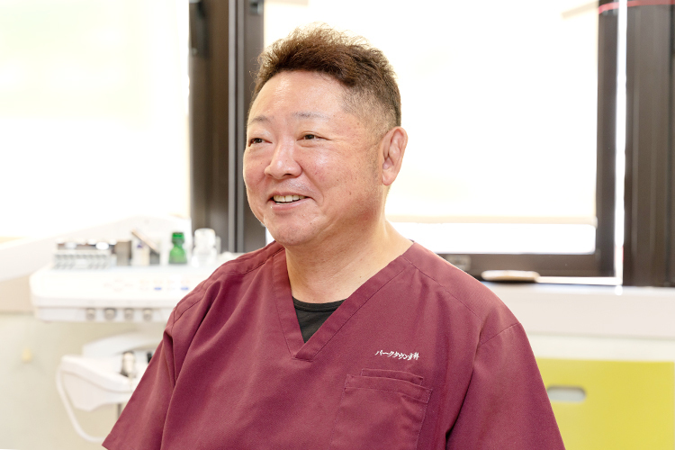 訪問歯科診療に限らず、これからの高齢社会に向けて、歯科診療をどのように行っていくかということを、他職種の人たちとしっかり連携を取りながら患者さんにとってより良い方向にもっていけたらと思いますね。あとは、長年、当院に通ってくださっている患者さんも多いので、そういった方々の受け皿として、当院を守っていきたいと思っています。クリニックは僕の原点でもあるので、皆さんに「パークタウン歯科に行けば安心」と思っていただけるよう、その時代その時代に合わせた取り組みをしながら、患者さんのお口の健康を支えていきたいと思っています。気になることがありましたら、何でも気軽に相談してください。アットホームなクリニックなので、患者さんの要望を聞きながら、トータルで治療のご提案をさせてもらいます。