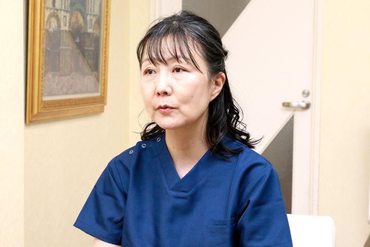 人の役に立つ仕事がしたいと思っていて、細かいことが好きだったので、人の役に立てて、自分も楽しく情熱を持って取り組める職業は何だろうと考え、歯科医師になりました。いくつかの歯科クリニックへの勤務と、出産・子育てを経て開業を決めましたが、開業にあたり思っていたのは「一方通行ではない診療がしたい」ということ。例えば、治療の説明にしても、専門的な知識を持つ歯科医師には当たり前のことでも、患者さんには理解しにくいことも多いと思うのです。言葉としては理解できても、感覚としてはピンと来ず「それってどういうこと? どうなっちゃうの? 何が起こるの?」と、患者さんが不安になってしまうようなことのない診療がしたい。そう思って開業しました。開業して15年になりますが、その気持ちに変わりはありません。