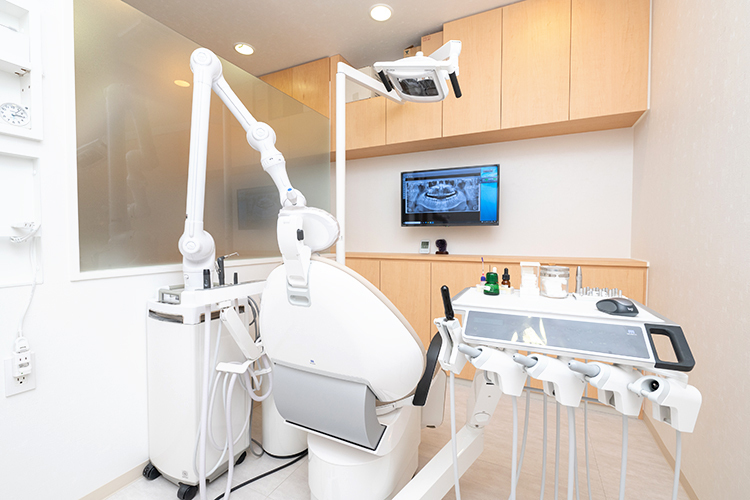 例えば、親知らずの外科的治療を行う際に、歯の形状や神経との重なりを確認する場合や、歯根破折(しこんはせつ)といって、歯が割れていることを確認するケースで活用しています。歯科用CTを導入して一番良かったなと思うのは、患者さんへのご説明がしやすくなったことです。すべての診療用チェアに設置したモニターで検査画像や口腔内の写真などが表示できるので、どこに問題があって、どんな治療をするのかをしっかり伝えることができます。患者さんもご自身の状態がはっきりわかるので、治療への意識も変わり、より進めやすくなりました。