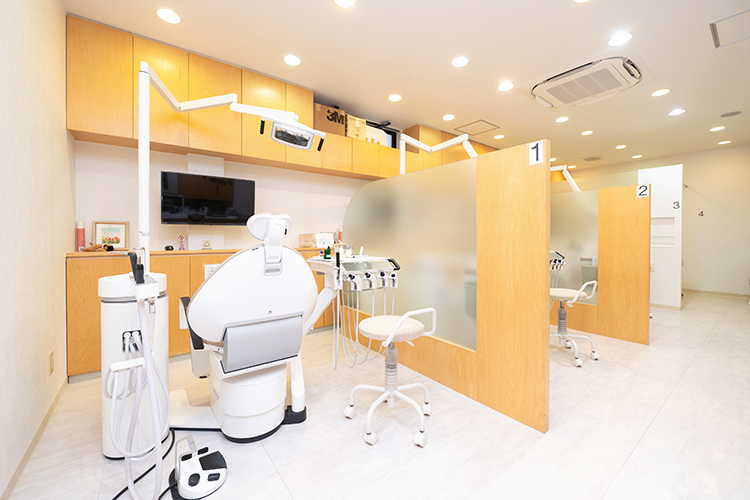 内装と設備の両方でリニューアルを行いました。カーテンや壁紙を新調して、お子さんの目に入りやすい場所にはキャラクターものを使うなどワンポイントも入れました。親子で通ってくださる方も多いので、少しでも明るい気持ちで来院してくれたらうれしいですね。また、照明にも工夫をしていて、患者さんは天井を見る時間が多いので、青みがかった色を避け、暖色系の光を採用しています。設備面では、診療用チェアを1つ増設し、それぞれにモニターを設置しました。歯科用CTや性能にこだわった滅菌器の導入など、患者さんの目が届きにくい部分も含めてリニューアルをしています。