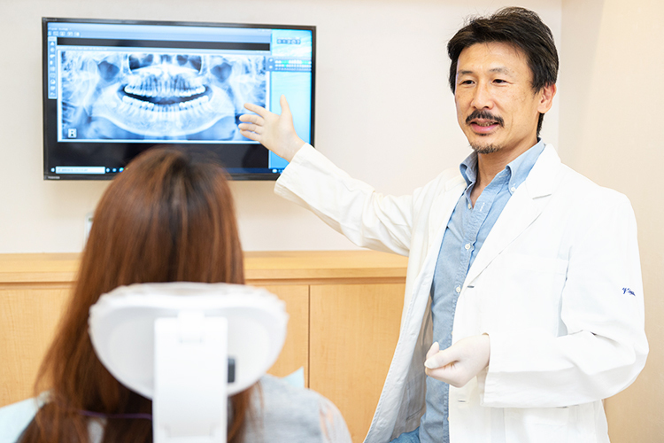 基本的な診療方針、大切にしている部分は変えずに、次の20年を見据えて前進していければと考えています。今回のリニューアルで診療用チェアも増えたので、将来的には歯科医師を2人体制にすることも検討中です。歯科治療は、これまでの歯を削る治療から、いかに歯を残すかという治療に大きく変わりました。これは国民皆歯科健診を国が進める方針からもわかります。つまり、国も歯を残す重要性を認識しているということです。歯を残すことをめざすためには精密な治療を、より時間をかけて行うことや早期発見・早期治療といった基本的な対応が必要です。ケースによっては自由診療の検討も必要になるでしょう。ですので、患者さんが納得して治療方法を選択できるよう、CT画像などをモニターで確認できるようにしました。こうした工夫や改良を重ねながら、抜かない・削らないを目標にした治療を提供できるように励みたいと思います。