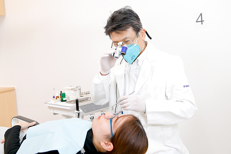 「抜いたり、削ったりしたものは戻ってこない」をキーワードに、歯の保存に重きを置いた治療を心がけています。例えば、神経を抜く治療を行うと痛みを感じなくなるため、悪化しても気づきにくく、処置が遅れてしまいかねません。そうなっては患者さんのためになりませんよね。そのため、なるべく歯や神経を残すことを方針とし、どうしても削る必要がある場合は、削る量を最小限に抑えられるように特殊なルーペや小さな切削器具を使って治療を行っています。虫歯が深く、神経が露出してしまって根管治療に進む場合は、MTAセメントを塗布し、可能な限り神経を保存できる方法で処置を行っています。治療後は再発をさせないための予防が大切です。当院では患者さんの予防をサポートできるよう、さまざまな取り組みを行っています。