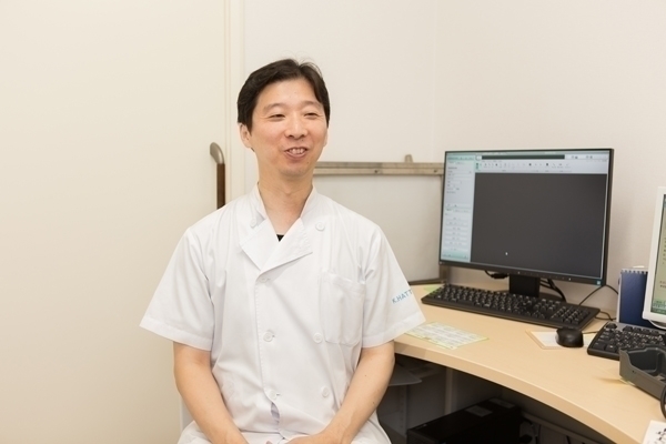 僕が診療時に患者さんと目線を合わせることを心がけているのは、研修医時代の経験から来ています。当時は忙しいながらも、きちんと患者さんと接しているつもりでした。ところがベテランの看護師さんから、「患者さんのベッドサイドに椅子を持っていって座り、ちゃんと話を聞いてあげて」と言われ、その時に初めて、まだまだできていなかったのだとわかったんです。また僕は背が高く、立ったままだと威圧感を感じる方もいるようなので、それ以来、患者さんと話す時は少しかがんでみたり、ベッドで寝ている方に対しては、まず傍らに椅子を置いて座った上でお話ししたりして、患者さんの目線をいつも意識しています。