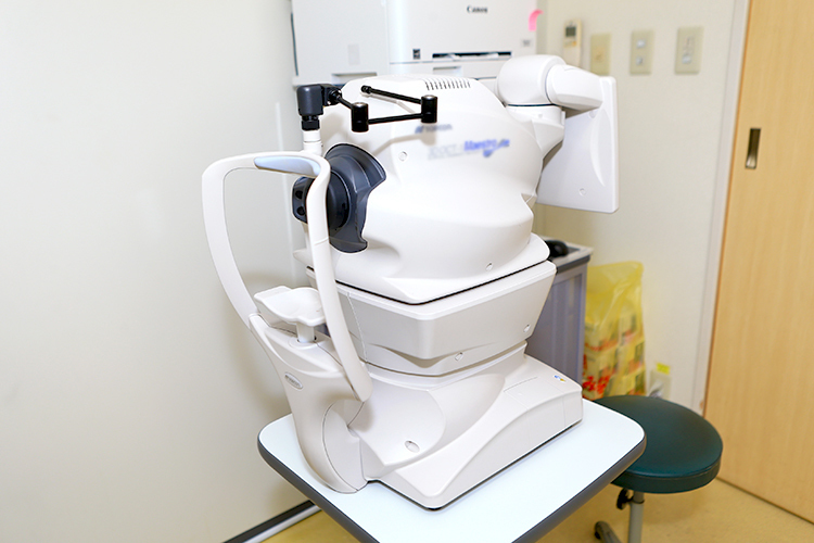 はい、2019年にOCT(光干渉断層計)を導入しました。緑内障や加齢黄斑変性症など黄斑部の疾患の疑いがある方の検査に使用します。視野に異常が出る前の視神経乳頭の形状変化を検出することができます。網膜や視神経をより詳細に精査することができるため、さまざまな目の疾患の早期発見や精密な検査が可能です。当クリニックでこの検査を受ける方の多くは中高年で、人間ドックで異常を指摘されて受診されたケースや、診察中に私が何らかの違和感に気づいて検査に進むこともあります。