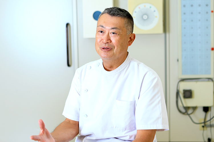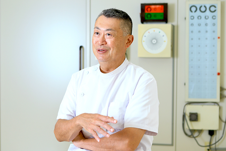 当院は私の父が1970年頃に開院しました。当時は全体的に眼科のクリニックが少なく、患者さんが困っていると思い、親しみのあるこの地で開院したそうです。今でこそ眼科のクリニックが増えてきましたが、当時はかなり遠方から患者さんが通っていたと聞いています。そのため、父は毎日遅くまで患者さんを診ており、診療時間が夜の7時までとなっていても、最後の患者さんが帰るのが夜の8時や9時過ぎということが普通でした。そのように患者さんと向き合う父の姿を子どもの頃から見てきたため、いつか自分も父のような医師になりたいと思うようになりました。