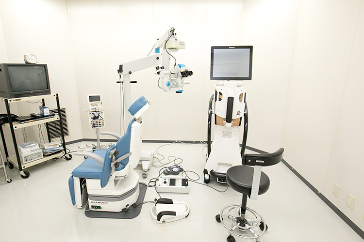診察で白内障が判明し、できるだけ早急に手術が必要だという場合、手術を急かしては患者さんも不安になってしまいます。ですので、手術するまでに何度か診察をして患者さんとの信頼関係をつくり、患者さんの気持ちに整理がついてから手術に進むようにしています。手術に関しては、月曜と木曜の週2回、午前診と午後診の間の時間に行っています。当クリニックの2階には、手術室のほかに休憩室もご用意していますので、手術後は2時間ほどゆっくりしていただいて、その後に診察を行って異常がなければお帰りいただく、という流れです。