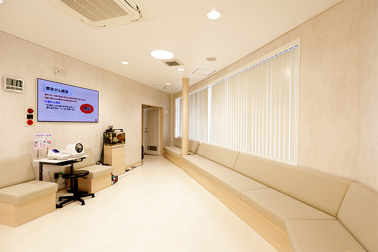 患者さんが快適に過ごせることを第一に考えました。デザイナーさんと相談して、明るくやわらかい雰囲気の院内にしました。外装も少し変え、タイル張りだった部分の壁を石にしました。大きく変わったのはやはり待合室ですね。以前は壁に貼り紙をして情報発信していたところを、大きなモニターを設置し、そこで情報発信するようにしました。今はもう貼り紙はしていません。診察室と処置室はあまり変えていませんが、感染症対策として、発熱している患者さんを隔離するためのスペースは確保しました。