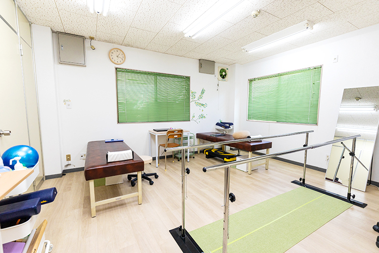 そうですね。患者さんが増えたことから、以前の環境では手狭に感じるようになり、少しずつ院内を改装することにしたのです。待合室は待ち時間を気持ち良く過ごせるように、診察室は広々と使えるようにしました。また私が現在も近隣病院にて非常勤医師として手術を担当している関係で、当院には手術前後のリハビリのために通われる患者さんも多いんです。そのことから、2階のリハビリ室は機器や装置の配置などを変えてリニューアルしました。理学療法士と作業療法士も増やしたため、以前は1人ずつしかリハビリ室を利用できなかったところ、現在は同時に3人ずつ案内できるようになったんですよ。