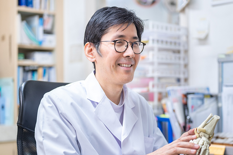 私は福岡大学医学部を1996年に卒業し、市中病院にて整形外科診療一般を学び、2012年に父の後を継ぎました。実際に臨床現場に立つと、先輩に助けてもらうことばかりで、なかなか追いつけない自分に悔しい思いもしましたが、素晴らしい先生がたくさんおられ、そういった方たちのもとで学べたことはありがたかったです。大学病院では、文献を片手にさまざまな症例を経験させていただきました。救急病院では、救急車がひっきりなしに来て、とにかく多くの患者さんを担当させていただきましたので、度胸がつき、対応力も身につけられたのかなと思います。