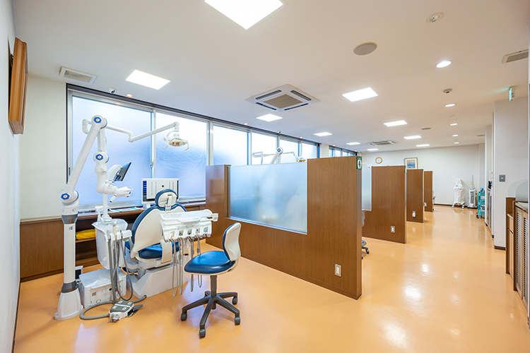 当院は2024年7月で、開業して54年目になります。父とともに治療にあたっていた期間は4年ほどですが、その間にインプラント治療やマイクロスコープを使った精密な治療、また審美歯科にも対応できるようになりました。父の頃からの患者さんもいまだ多く通っておられますし、筑紫野市、太宰府市を含むこのエリアは車社会ですので、1階をすべて駐車場にして雨に濡れないような造りにしました。また、年配の方でも移動しやすいようにエレベーターも設置しましたた。地域の方で長く通ってくださる方や虫歯などで急に痛みが出たという方もいれば、定期的に東京からメンテナンスにいらっしゃる方もいて、患者層は幅広いと感じています。地域の学校歯科医も担当しており、小児歯科も診ていますので、日々接する年齢層も本当にさまざまです。